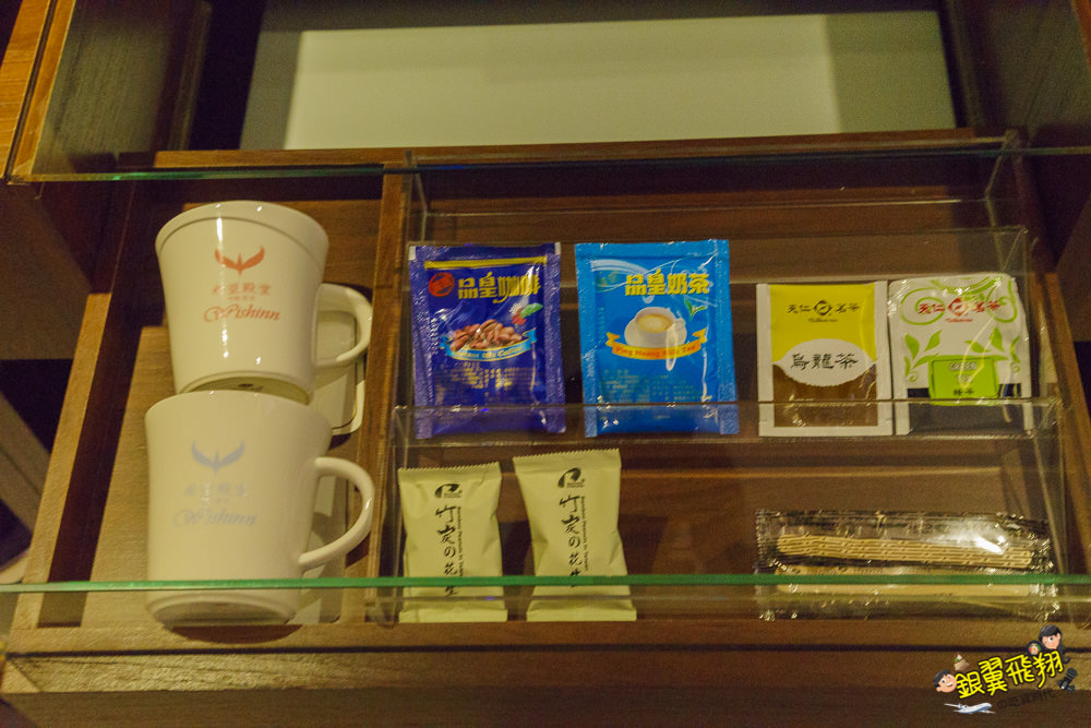 ▲房內備有礦泉水、咖啡、茶包、餅乾。