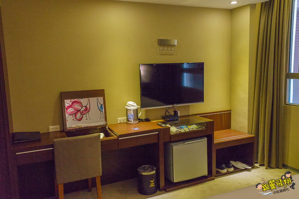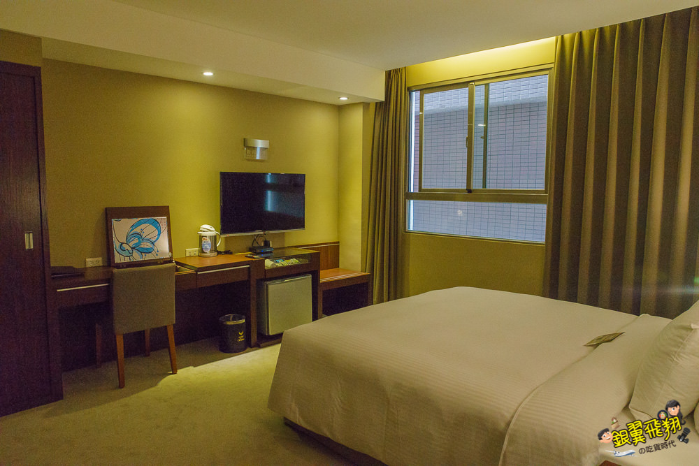 ▲房間內的空間很寬敞大約10-12坪,提供一張雙人床、 42吋液晶數位電視、梳妝台、衣櫃、行李架、冰箱,空間可將大行李箱攤開後都還有可以走動的空間。
