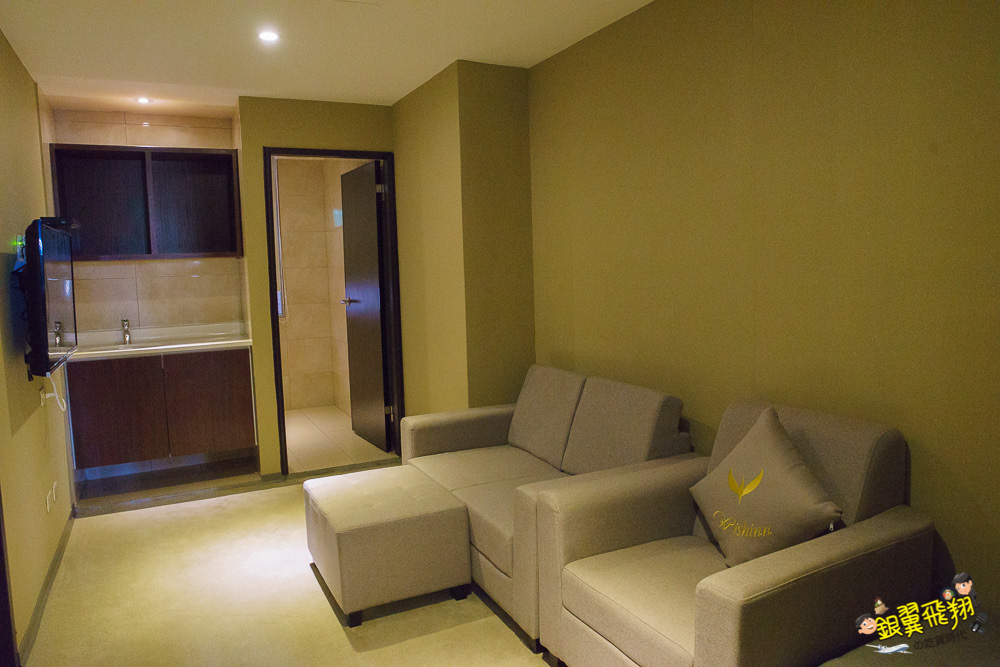 ▲這次入住被升等至尊爵房一進去頗令人驚艷,竟然還有一個小包廂的獨立空間,頗適合接待朋友的地方,也有獨立的廁所。