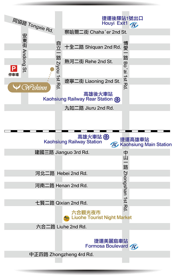 2.搭乘火車:高雄火車站後站,步行至飯店約十分鐘。